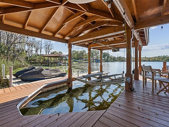 Prepare to be dazzled by this exquisitely remodeled waterfront estate in a gated Windermere community. Nestled on an over one-acre private lot, the home sits on the shores of the pristine 38-acre Lake Roper. Massive double doors greet you as you step into impeccable craftsmanship and high-end finishes that sparkle amongst the lakefront backdrop. Soaring ceilings and natural light highlight the scale and architectural grandeur of the open-concept design. The gourmet kitchen will delight the chef in your family, boasting professional-grade stainless steel appliances, a gas cooktop, solid wood cabinetry, a floating island, and stunning quartz countertops. The main living space features a contemporary fireplace, with expansive windows and enormous sliding glass doors that perfectly frame the shimmering lake. The primary suite is a tranquil space with a dedicated sitting area, offering uninterrupted views of the water. The spa-like primary bathroom features a deep soaking tub, oversized walk-in closets, and dual vanities, turning your daily routine into a peaceful ritual. Seamless outdoor entertaining is effortless, thanks to the outdoor summer kitchen and the custom-designed, heated pool with an integrated sun-shelf and seating. The private boathouse is designed for the ultimate watersport enthusiast with a state-of-the-art dock featuring an electric boat lift and two dedicated drive-up jet ski docks, all while serving up unforgettable Florida sunsets, nightly. This is the perfect place to unwind, complete with custom lights for in-water illumination that casts a captivating glow across the lake at twilight. Unwavering peace of mind is ensured by the Generac whole-house standby generator, while the oversized three-car garage offers ample, dedicated space for your luxury vehicles and recreational pursuits. This premier location offers unparalleled convenience: Enjoy walking/biking to Winter Garden Village for dining and boutique shopping, while remaining just moments from the coveted charm of downtown Windermere. Enjoy top-rated schools, world-class amusement parks, and quick access to Central Florida's major luxury and business corridors.