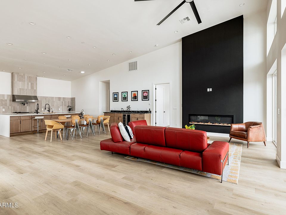Midcentury lines at modern scale. This three bed two bath retreat has large entertaining spaces and built in function to match. Not to mention the party pantry, appliance galley, rooftop deck, mountain views, 1000 square foot covered outdoor space with fire feature, detached casita, climate controlled/oversized garage and NO HOA. It was all meant to be their forever home but it can be yours instead.