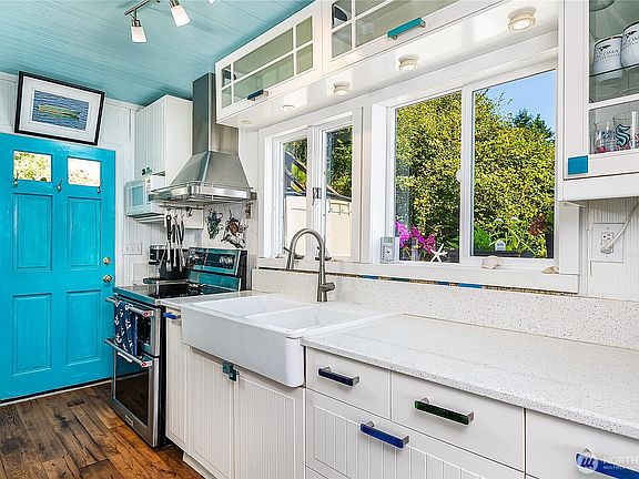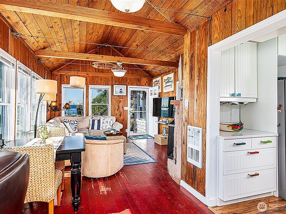 Charming beachfront retreat on an 8,992 sq. ft. lot w/ 50 ft. of low-bank beachfront. Enjoy stunning views of Mt. Rainier & Puget Sound while spotting orcas, whales, bald eagles & dolphins. Fish from your wrap-around priv. deck, where tides set the rhythm of serene island life. Explore the beach at low tide & come and go by water from your boat ramp at high tide. Open floor plan, updated kitchen, cozy fireplace & mini-split (heating/cooling) blend rustic charm w/ modern comfort. Detached 16 x 20 outbuilding/sleeping porch/studio with wrap-around deck and the same gorgeous views. Mins from Tahlequah ferry, this haven offers easy access to Vashon’s vibrant community, Tacoma & Seattle—ideal for relaxation & inspiration. Gone fishing...