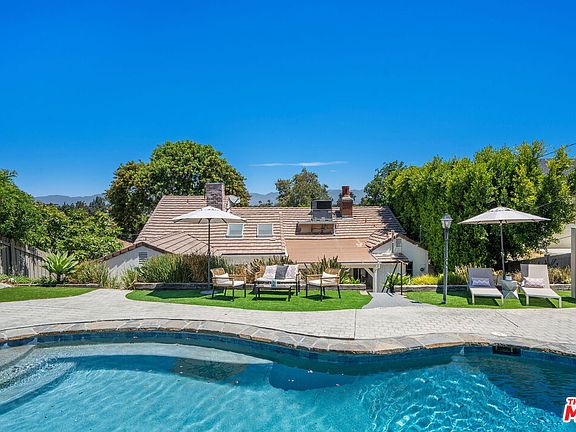 Welcome to 13038 Greenleaf Street featuring 3 bedrooms and 3 baths. The property is an exquisite single-story retreat nestled south of Ventura Boulevard in the heart of Studio City. This tastefully renovated home blends timeless traditional charm with modern sophistication, offering approximately 1,969 square feet of sun-drenched living space on a beautifully landscaped 9,243 square foot lot. Upon entering, you're greeted by an open-concept main level that seamlessly integrates the kitchen, dining, and living areas beneath vaulted ceilings, creating a light and airy ambiance perfect for California living. The chef's kitchen is a focal point, boasting custom cabinetry, sleek quartz countertops, stainless-steel appliances including a Viking gas range and an ideal layout for entertaining. Throughout the home, rich hardwood and tile floors lend warmth and texture, while an inviting fireplace anchors the main living space.The primary suite is a tranquil escape featuring dual California Closets and a spa-inspired ensuite bath with a standalone soaking tub, dual sinks, a separate glass-enclosed shower, and a thoughtfully designed vanity. Two additional bedrooms, including one currently serving as a home office with its own half-bath and private backyard access, provide flexible living arrangements. French doors extend the living space onto a newly stone-paved patio, where a wood-burning fireplace sets the stage for outdoor entertaining, al fresco dining, or peaceful sunset evenings. The terraced backyard descends to a private pool level framed by lush grass pads and panoramic valley and mountain views.Additional highlights include a spacious insulated two-car garage equipped with recessed lighting and pre-wired for internet and cable. Central heating and cooling ensure year-round comfort. Located just moments from Ventura Boulevard, Coldwater Canyon, and the Shops at Sportsmen's Lodge, this refined residence delivers the very best of Studio City's vibrant, walkable lifestyle in an intimate, elevated setting.
