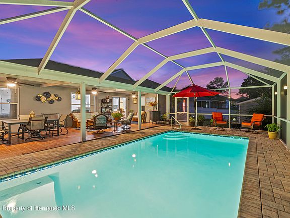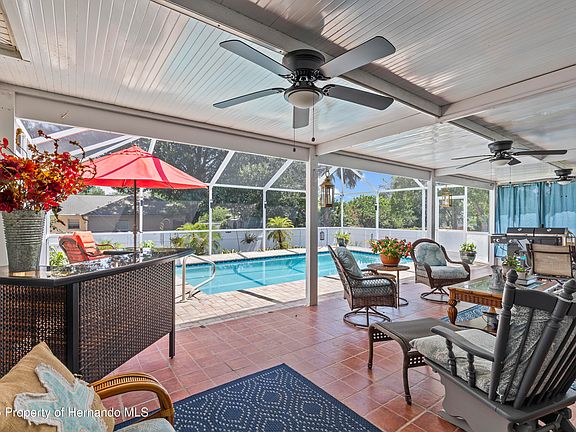 Step into refined Florida living with this beautifully upgraded 5-bedroom, 3-bathroom pool home offering 2,689 square feet of heated living space and 4,749 total square feet, all situated on a sprawling 0.29-acre fully fenced lot in the heart of Spring Hill. A brand new roof will be installed prior to closing in 2025, giving buyers added peace of mind. From the moment you enter, you're welcomed by soaring ceilings, an open and airy floor plan, and stunning new wood-look laminate flooring that flows seamlessly throughout the main living areas. Designed for both comfort and functionality, this residence offers a formal living room, spacious family room, elegant dining area, breakfast nook, and a well-appointed laundry room with additional storage. The home boasts two luxurious primary suites, ideal for multi-generational living or ultimate guest privacy. The downstairs primary retreat features a large walk-in closet and a completely renovated en-suite bathroom with dual sinks, upgraded fixtures, a modern walk-in shower, and stylish tilework. The upstairs suite offers a tranquil escape with its own updated bathroom featuring a soaking tub, upgraded countertop, and refined finishes. The chef-inspired kitchen is a showstopper with real wood cabinetry, granite countertops and matching backsplash, stainless steel appliances, an abundance of cabinetry, a walk-in pantry, and a generous island perfect for cooking or entertaining. Step outside to your private outdoor paradise. The expansive screened lanai wraps around a sparkling pool, offering the perfect setting for both quiet relaxation and vibrant gatherings. A large shed adds year-round functionality. The oversized lot also includes a wide driveway, double gate access, and ample room for boats, RVs, or other recreational vehicles. Additional highlights include cathedral ceilings, a three-way split floor plan providing privacy for every bedroom, spacious guest rooms, and an oversized two-car garage. Best of all, there are no HOA fees, No Restrictions, no CDD Fees, No Flood Insurance requirements, NEVER FLOODED & NOT in flood zone! Located just minutes from shops, restaurants, hospitals, golf courses, and the scenic beauty of Weeki Wachee Springs. With quick access to the Suncoast Parkway and Tampa International Airport, this home offers the perfect blend of luxury, convenience, and lifestyle. This is Florida living at its finest. Schedule your private tour today. The seller is motivated, and this home is ready to impress.