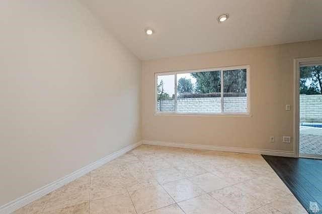 Chef's kitchen complete with granite counters and wood cabinetry. Each bath has been updated. Bedrooms boast mirrored closets, and spacious feel. Brand new laminate throughout all the common areas. Backyard is an entertainer's dream WITH your very own POOL, perfect for a warm Moorpark day!