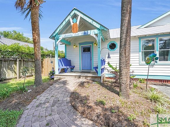 This adorable 1950's cottage is tucked away on Tybee Island's south end and situated on a double lot. You feel you are on Tybee Time the moment you enter the home. Gorgeous hardwoods throughout living spaces and bedrooms. The open concept plan allows everyone to be together and makes entertaining a breeze. The split bedroom plan has the master retreat on the second level complete with a spacious ensuite bath and walk-in closet. Kitchen is fully equipped with stainless appliances and spacious wet bar perfect for a coffee station or wine bar. The real gem of this home is the outdoor living space that has soaring vaulted ceilings and a wood burning fireplace. There is enough space to include a game area to entertain the kids, big or small. Plenty of greenspace in the backyard perfect for outdoor entertaining, gardening or storing your boat. Only a couple blocks to the beach, Alley 3, AJs Dockside restaurant and shopping! Come see for yourself why this home is "Happily Ever After."