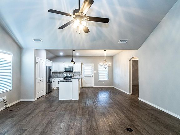 Beautiful 4 bedroom, 2 bath in the Cedar Park neighborhood, with vaulted ceilings and beautiful painted kitchen cabinets. This homes features lots of extras such as modern backsplash, kitchen island, pendant lighting, and vinyl plank flooring throughout. Spacious bedrooms with plenty of closet space and isolated master. Covered patio provides shade and plenty of room for outdoor entertaining. House is beautifully landscaped with sprinkler system. House has 2' Faux Wood Blind and lots of storage. Roommates Considered (4 @ $400 deposit per roommate);