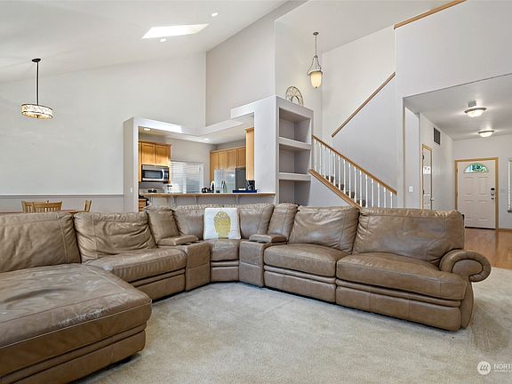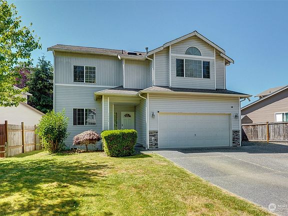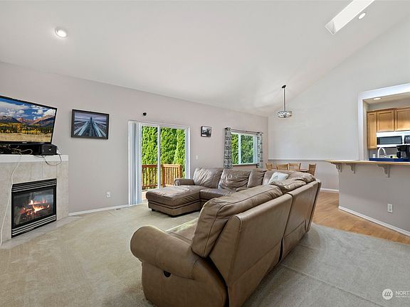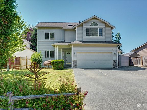 $10,000 Buyers Closing Cost Incentive at closing. Highly desirable multigenerational floorplan in Lake Stevens. The main floor features a Junior Master Suite with 3/4 bath and an open-concept great room with a vaulted ceiling and skylights, creating a spacious ambiance. The upper level boasts a Master Bedroom with vaulted ceilings, a 5-piece primary bath, and a huge walk-in closet. Newer water heater (2021), dishwasher (2022). New heat pump (2024), fridge (2024), gas oven (2024). Enjoy a fully fenced, level backyard with a deck providing ample play space. The oversized, level driveway easily accommodates 6 cars plus RV/boat parking. Apples, peaches, grapes, & planting beds awaiting with compost for your organic farming!