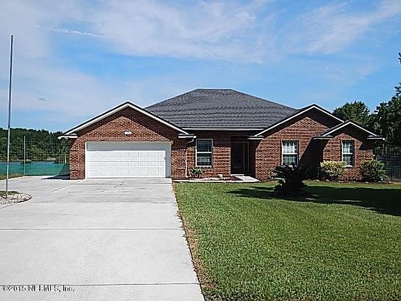 Unique property with over 2.8 acres of seclusion. This property will amaze you. All brick 3/3.5 home sits on a 12 acre man made lake. Only 6 homes around lake. Put the boat in the water from your very own back yard. 1280 Ft detached garage, with window unit to cool garage. 4 garage doors on this large detached garage with room for 3-4 cars. Home also has an attached 2 car garage. This property is a must see and won't last long. Gated entry. Call Susan Krawczyk, Realtor 904-813-3082 for more info