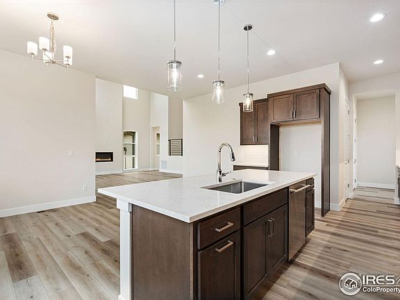 This beautiful contemporary 2-story by Trumark Homes offers 2,968 sqft. of above grade finished living space with 5 bedrooms and 4 baths located on a southwest facing lot backing to open space. Four car tandem garage is a big hit for storing all your Colorado outdoor recreational equipment as well as full unfinished basement for additional storage or future living space. Main floor bedroom and bath perfect for those not wanting to navigate stairs. Beyond the great room with fireplace and soaring 20-foot ceiling is a flex office - could be a great craft room or reading nook. The gourmet kitchen features a spacious walk-in pantry, ample storage, a center island that overlooks the dining and great room. The kitchen includes 42" deluxe cabinetry, quartz countertops with tile backsplash, stainless steel appliances including a 5-burner gas cooktop, convection oven, built-in microwave, and dishwasher. The great room connects to a large Colorado outdoor room, making entertaining a breeze. Upstairs you'll find a multi-functional loft perfect for a gaming area or reading nook, three secondary bedrooms, and laundry room with sink. The grand suite offers a luxurious, spa-like bathroom featuring dual sinks, a walk-in shower with upgraded poured shower pan, free standing tub, and expansive walk-in closet. Home includes premium finishes, spacious 9 and 10-foot ceilings, tankless water heater, dual A/C and furnace for your comfort, and much more! Special buyer incentives are being offered now - ask your sales managers to assist you in targeting what you need to make a new home yours today!