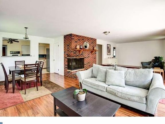 This Barclay Farm Cambridge ranch offers a rare basement and it is finished! Recently refreshed with new wood look laminate flooring in the living and dining rooms. Freshly painted neutral throughout the main floor. The kitchen appliances are updated and there is a breakfast area and large pantry. Retro metal cabinets are coming back in style with the new mid-century decor that is so popular. The wall between the dining room and kitchen has been partially opened up for a further feeling of openness and is a good area for a buffet or bar stools. The living room is huge and has a corner brick fireplace as its focal point. This model has the option of a 4th bedroom (the door opening is still there). Install a wall sectioning off part of the living room and you can have this as a family room, office or another bedroom. The master bedroom has its own full bath and 2 closets, one of which is a walk in. The 2nd full bath services the other two bedrooms as well as functioning as a guest bath. The finished basement with a wet bar, extra room, pool table has endless possibilities. Still some work to be done, but for this price and on a great street, the effort will be worth it. Walk to swim clubs, Barclay Farmstead, nearby park and easy access to Route 70 and 295.