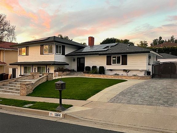 North Hills Beauty with ideal cul-de-sac location, for your living pleasure this is a 5-bedroom 3 bath home, entire backyard has been redesigned with a customized pool with slide, waterfalls, lighting and hide-away gratto and spa, along with pavers throughout backyard and driveway. Enter via your curbside stone steps leading to beautiful front entry door. Walking into wooden floors in living room with a fireplace, kitchen and dining area. Kitchen has double sinks, center island with a sink, Quartz countertop kitchen is outfitted with top-of-the-line commercial type appliances with Viking slide-in chef's range, Viking refrigerator and double oven. Separate laundry room. Step down to a carpeted family room with a fireplace, walk through the double pane slider into a covered patio overlooking your dream pool, or relax in the downstairs with 2 bedrooms with a bathroom Top level has carpet, with three 3 bedrooms upstairs. The Master bedroom has master bath with his and her sinks on quartz countertop, double shower heads, with glass enclosure. Whole house fan keeps home cool and fresh. Entertainers delight with top level patio with built in barbeque, sink, refrigerator both patios are Alumawood with ceiling fans. Garage completely insulated and dry walled with attic storage. Automatic gate allows access to backyard, Tesla charger in driveway. 30 solar panels (paid off) Close to freeways, schools, and Uptown Brea for fine dining, shopping and theaters.