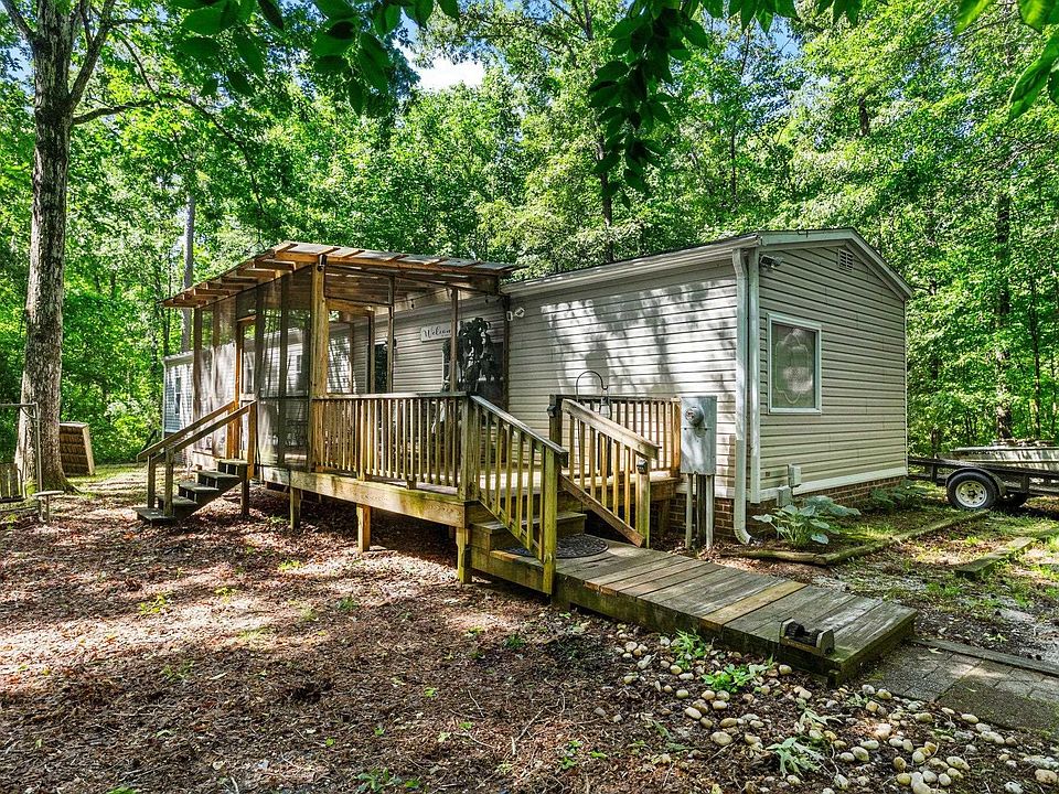 Don’t miss your chance to own over 8 acres of peace and quiet! 1304 Cheek Road is a 3 bed/2 bath home on 8.13 acres of private wooded land. Inside you will find a spacious eat in kitchen with island seating, ample counter and cabinet space and full appliance package that is open to the spacious living room. The split bedroom floor plan ensures maximum privacy. The two secondary bedrooms share a hall bath with a tub/shower combo and the primary suite features a large, attached bath with dual sinks, shower, and large walk-in closet. The outside living space is your own private oasis. There is a large porch that is made for relaxation. Listen to the birds and watch for deer and turkey in the woods. The area right around the home is fenced in and would be ideal for a large garden, pool, playset and more! Surrounding the home are woods and there is even a little creek on the property! Just imagine the possibilities for this property! Live in the home while you build your dream home, make this your quiet weekend escape from the hustle and bustle of everyday life, or move right in and start making memories! As secluded as you are, you are less than 20 minutes to major roads, shopping, dining, and medical facilities. This is a rare opportunity…don’t let it slip away!