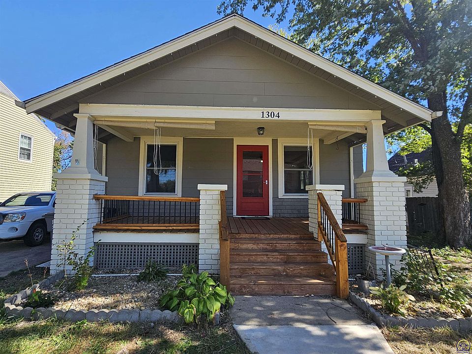 This classic bungalow offers a comfortable layout with thoughtful updates throughout. Inside, the living room showcases original hardwood floors and solid wood trim that highlight the home’s timeless character. The kitchen has been refreshed with newer cabinetry, a tile backsplash, modern flooring, and brand-new appliances for a fresh, inviting feel. Don't forget the toe kick drawer under the sink! All new replacement windows and the washer and dryer will stay! The full bathroom features updated fixtures, a new vanity, and a large walk-in shower. Two bedrooms offer great natural light, hard wood flooring, and ample closet space. The unfinished basement provides storage or workshop potential. Outside you have a newer roof, the covered front porch includes new decking and railing—ideal for relaxing or greeting guests. Newer sewage line and water line. Off-street parking is available, and the property’s convenient location provides easy access to area amenities, shopping, and parks. This home combines vintage charm with practical updates, making it an excellent opportunity for a first-time buyer, downsizer, or investor.