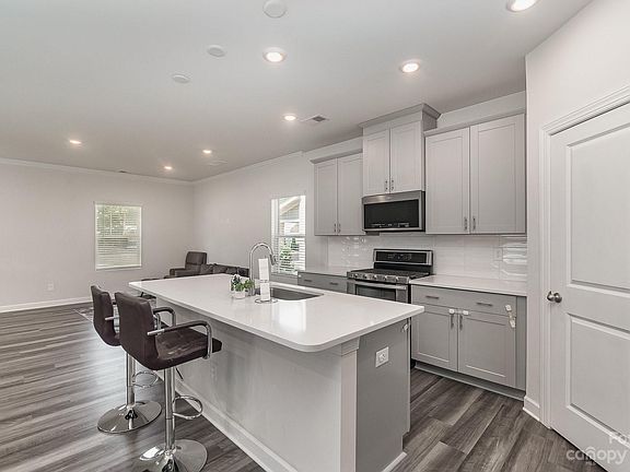 Like New Energy-Efficient Home in Mint Hill Village- built in Nov 2021! Come take a look at this Beautiful 3-Bed,2.5-Bath with 2-Car Rear Load Garage located in the heart of Mint Hill. As you enter the home from the Epoxy Coated Garage (facing North-East) you are welcomed by a dropzone near the half-bath before entering the Open Concept kitchen and dining areas. This open-concept main level features a kitchen island and counters topped with white-ice Quartz, 5-Burner gas-range with a Double Oven (Refridgerator Included). Main floor is covered with Oyster Oak EVP flooring and LED recessed lights throughout. The 2nd floor opens to a loft area with the Primary Bedroom ahead. The Ceramic Tiled shower with seat, large walk-in closet and dual vanity highlight the primary bathroom. Two additional bedrooms make up the upper floor with a Full Bathroom with double vanities connecting the two bedrooms. Laundry located upstairs (washer and dryer included). Long-Term Rentals allowed