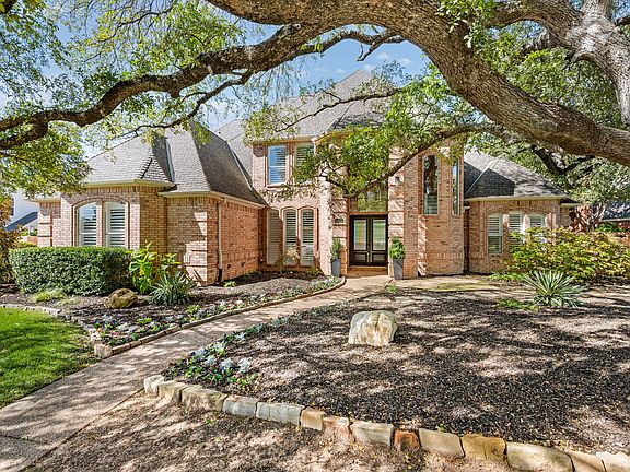 Welcome to this stunning 5-bedroom, 6-bathroom home located in the desirable Monticello Addition in Southlake. This property boasts a large living room with soaring ceilings and a cozy fireplace, perfect for entertaining or relaxing. The gourmet kitchen is a chef's dream, featuring granite countertops and stainless appliances. The primary suite and an additional guest bedroom are conveniently located downstairs, offering easy accessibility. The home also includes a study with built-in shelves, perfect for a home office or library. A dual staircase leads you to the second floor where you'll find a spacious game room and three additional guest rooms. The property is situated on a large treed lot, complete with a pool and sports court for outdoor enjoyment. The home is beautifully accented with extensive wood mouldings throughout, adding a touch of elegance. This Southlake gem is waiting for you to make it your own.