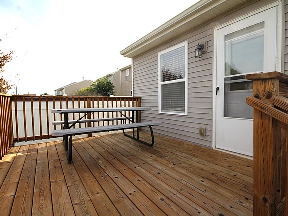 You'll love the open cathedral ceiling living room/kitchen/dining area. Granite countertops with snack bar, pantry closet and appliances in spacious kitchen. Wood deck off dining area is great for entertaining! 11.9 x 14 primary bedroom with ceiling fan and large closet. Main floor laundry with washer & dryer. Lower level features a big 12.7 x 19.9 third bedroom with egress window, 400 sq. ft. semi-finished rec room and plumbing roughed-in for a second bath. Back yard is mostly privacy fenced. Relax on the 4.2 x 17.7 covered front porch! Resort style living including community pool, splash park, big wheel track, soccer fields, club house, walking trail and open spaces. Award-winning Vicksburg Schools! Enjoy this fine home and Centennial community today!