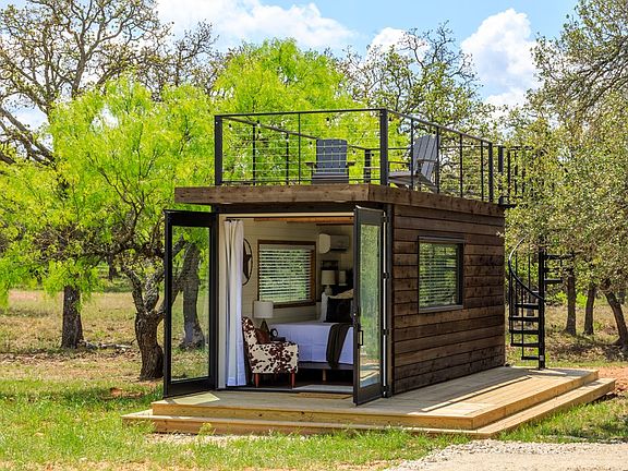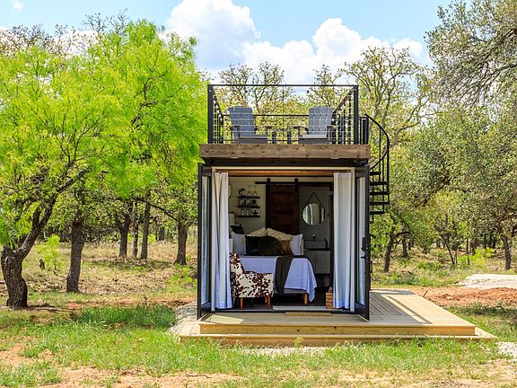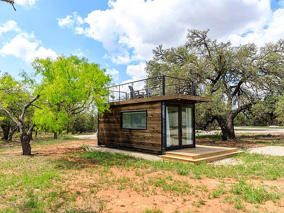 Unique Hill Country Investment Opportunity – 11.77 Acres with 12 Modern Container Cabins Nestled just outside the city limits of Fredericksburg, this property in scenic Gillespie County offers an incredible blend of income-producing potential, serene natural surroundings &room to grow. W/ 12 fully furnished container-style cabins—2 of which feature one bedroom and one bathroom & 10 studio-style units—this property is currently operating as a short-term rental business. All utilities are in place, including a private well with 2,600-gallon storage tank, water softener, septic system, and on-site electricity. A commercial laundry facility adds even more convenience for hosting guests or managing events. The cabins are modern, stylish, and ready for immediate operation. The land is level and dotted with mature oaks, offering a peaceful & private atmosphere with paved road access. There's plenty of space for expansion, making it ideal for developing additional lodging, adding recreational amenities, or transforming it into an event venue, family compound, or non-profit retreat. Enjoy abundant wildlife, wide-open skies, and fresh Hill Country air all just minutes from Fredericksburg.
