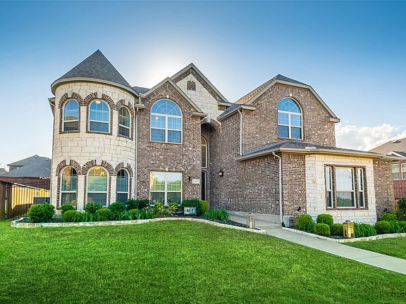 Welcome to 1304 Jetty Knot Trail located in the highly sought-after master-planned community of Inspiration! This stunning 5-bed, 4-bath home offers 4,402 SF of thoughtfully designed living space on an expansive .33 acre lot w a 3-car garage & extended driveway. Beautiful curb appeal featuring Austin chalkstone, custom wood garage doors+an elegant turret is sure to impress. Inside, you’ll find true dual primary suites (1 on each level), making this home perfect for multi-gen living. The grand entryway boasts a curved staircase w iron balusters, wood-look ceramic tile flooring thru out & fresh neutral paint. The spacious family room features soaring vaulted ceilings, a brick gas fireplace+abundant natural light. The gourmet kitchen is a chef’s dream w white granite countertops, classic white cabinetry, Frigidaire Gallery SS appliances including a 36in gas cooktop+double ovens, butler’s pantry, huge walk-in pantry+a bright, open breakfast area. Entertain in style in the formal living & dining rooms, each w tray ceilings & elegant trim. The downstairs primary suite includes a sitting area, private backyard access & an oversized ensuite w dual vanities, granite counters, large walk-in shower, garden tub & walk-in closet. A 5th bedroom downstairs is ideal for guests or a home office, complete w built-ins & an adjacent full bath. Upstairs, enjoy a large game room & a separate media room. The 2nd primary suite includes a luxurious jetted tub, dual vanities & separate shower. 2 additional bedrooms share a Jack-and-Jill bath & one includes a bonus nook. Step outside to the 300+ SF covered patio w gas+plumbing rough-ins for a future outdoor kitchen & a massive backyard w plenty of space for play or a pool. Inspiration offers resort-style amenities including an amazing pool, lazy river, fitness center, clubhouse, parks, trails+more all just steps from Lake Lavon. Don't miss this rare opportunity to own a beautifully upgraded home w room for the whole family! And Wylie ISD too!