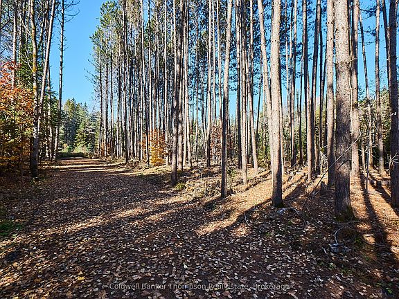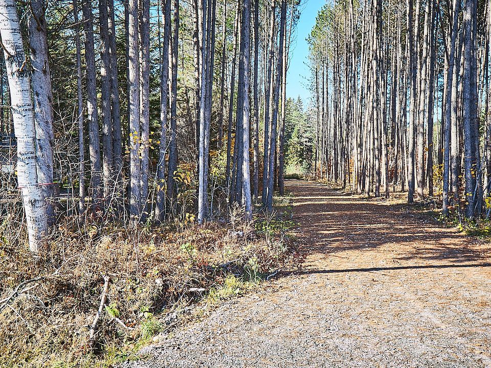 Lovely piece of land well-situated on the North end of Huntsville on a year-round road. Almost 7 acres of treed property with close access to highway 11 and only five minutes from downtown Huntsville, this would be a lovely setting to build a home. Mature trees make up the landscape and will offer great privacy to tuck yourself away and be surrounded by nature. Driveway is started, but will have to cross over the pipeline to get to the building site and hydro is at the lot line.