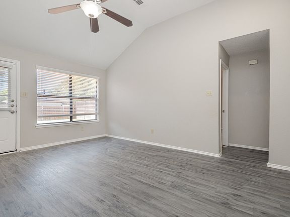 The family room is open to the kitchen and features vaulted ceilings and low maintenance flooring.