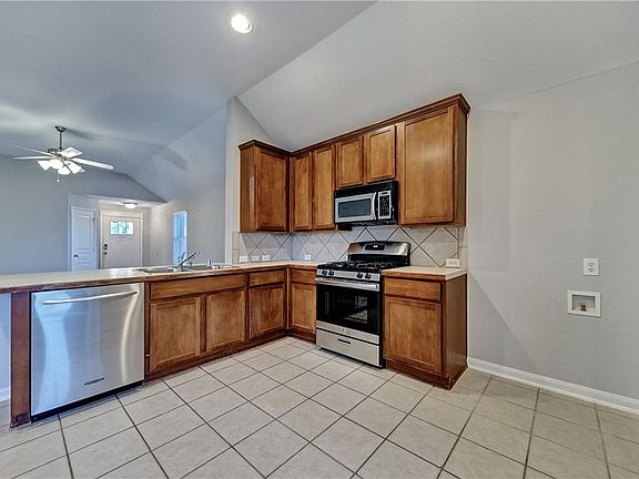 This Haslet home features fresh carpet, paint, new stainless steel appliances, and a smart location within Sendera Ranch-- a master planned community with a pool, lake, clubhouse, sports fields, a playground, and more! The open concept kitchen provides a breakfast bar and clear view of the living room to keep an eye on others while cooking. Just off the living area, the Master houses a private ensuite with dual sinks, shower, tub, and walk-in closet. Central to 287, 114, and 35W. Located steps from Truett Wilson Middle School and minutes from Willow Springs Golf Course. See attached offer checklist. This home comes with a 30-day satisfaction guarantee and one-year premium warranty. Terms and conditions apply.