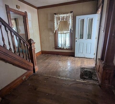 The main house features 4 bedrooms, formal living & dining rooms, 2 full baths (1 up/1 down), a galley kitchen and a LOT of the original wood floors and woodwork (check out the beautiful staircase newel post!)