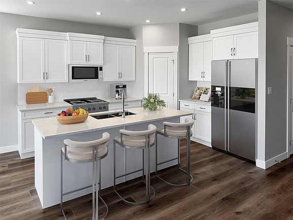 Open concept style kitchenQuartz countersGas fireplaceMaster ensuiteWalk-in closetCovered patio