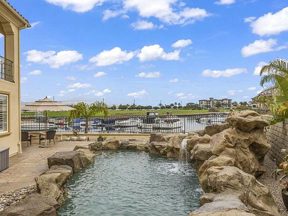 Nestled in the tranquil Westport At Mandalay Bay community, this exceptional waterfront home at Channel Islands Harbor sits on a generous lot size of over 6,207 square feet, making it the second largest in Westport. With four bedrooms and four bathrooms encompassing 3,131 square feet, this residence, offered on the market for the first time by its original owners, offers a rare opportunity for spacious and comfortable coastal living. The backyard is a focal point, featuring a custom-built Viking Grill barbecue setup, custom fire pit and a solar heated & powered rock pool and spa with waterfall features, making it one of the few homes in Channel Islands Harbor with a private swimming pool. Additionally, the property includes a 45-foot boat dock. The interior impresses with porcelain Italian tile, travertine, marble center point flooring feature valued at over $10,000, high-quality vinyl flooring, and granite kitchen countertops imported from India. Recent updates include a new Sub Zero refrigerator new exterior and interior fixtures and automated landscape irrigation system. Other upgrades include air conditioning, a newer LG washer & dryer, automatic lighting system with dimmers, a comprehensive home security system and a powder-coated garage door for insulation. The pool, heated by solar panels on the roof, boasts artificial concrete rocks, a Pentair Intelecom system for chemical balance, and a wireless smart system accessible through an app and Wi-Fi connection, along with a captivating colored underwater lighting feature. The property's ideal lot location shields it from prevailing winds, ensuring the backyard receives just the right amount of sun and shade. With convenient access to amenities and the beach just a mile away, this residence exemplifies the epitome of luxurious and exclusive Southern California beach and marina living on an expansive lot.