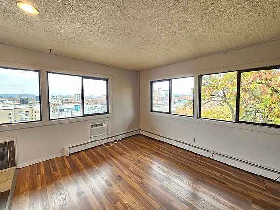 FOR RENT: Beautiful top-floor 1.5 bed / 1 bath open-layout unit in a secure building located in a quaint lower South Hill neighborhood, a walkable distance to downtown Spokane! Available for move-in August 1. Unit This top floor corner apartment includes a spacious living and dining area, hardwood flooring and windows on two sides, which provide plenty of natural light and a stunning view of downtown Spokane, the north side, and Mt. Spokane. Adjacent to the living room, the kitchen includes custom-built cabinets, offering lots of storage space, and durable tile flooring. In addition, the unit includes a half bedroom (8 ft. x 10 ft.) with hardwood flooring, perfect for use as a second, smaller bedroom or home office.The main bedroom includes a large closet for storage. Building & Land The secure building features a keyless access code and guest buzz in from entry. Amenities include an accessible rec room with exercise equipment, a pool table, table tennis, and more. Coin-operated laundry facilities and indoor, locking mail boxes are located on site. Located on a bus line (Spokane Transit Authority), this building is located one block from multiple bus stops. Off-street parking spaces are available on an assigned basis. Car size and tenant seniority considered. There's also ample street parking. Heat is included with rent! $50 fee for water, sewer and garbage. One cat is permitted with a $300 refundable pet fee. No dogs allowed. This is a NO smoking property. External, secure storage units available on-site at no extra fee, based on tenant seniority and availability. Application fee will be reimbursed in the first month's rent. Cliff-Cannon Neighborhood Situated in the Cliff-Cannon neighborhood on the edge of downtown, this apartment is just minutes away from healthcare centers, museums, parks, schools, restaurants, retailers and waterfront recreation along the Spokane River. Also, you're just a couple blocks from freeway access. Rental Eligibility: 1. Applicant(s) must be a minimum of 18 years of age. 2. Each applicant will be required to apply individually including married couples. 3. Gross monthly household income must equal three (3) times the stated monthly rent. 4. Credit score of 600+ is required 5. No prior evictions or owing money to previous landlords. 6. No felony on a background check. Landlord Information: The landlord, who lives on site, has owned the building for 23 years and has made vast improvements inside with remodeled kitchens and bathrooms and outside on the landscape, with beautiful summer foliage and a water feature. Tenant issues are addressed immediately. Tenant Testimonials: I love living here. It's the place I've called home since 2019. I feel safe and very comfortable. We have a very attentive building manager who is very prompt and really cares about tenants. The neighbors are very respectful and keep to themselves, but are always right there if needed. I love the view. We are on the bus line and so close to so many fun activities." - Diana "I've been living here since 2022 and I've been very happy living here. The tenants are nice, respectful, and quiet. And it's so great having the landlord living on-site! Any little issue pops up, and he's there immediately taking care of it. 5 stars." - Jak "I've been a tenant since 2017 and I love living here. Our landlord lives on site and is wonderful, kind, and always very attentive to our wants and needs. The secure entry provides a safe place, indoors and out. The property is impeccably maintained. During the winter months, you'll find the landlord always quick with snow removal near cars and common areas. Our community is small with only twelve units, yet we all watch out for each other. You'll find a lovely garden in the spring time and beautiful views from the apartments. I highly recommend living here!" - Kelley