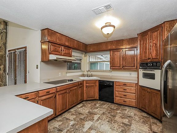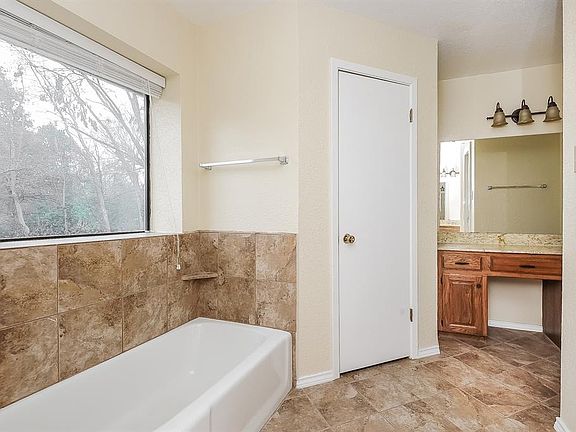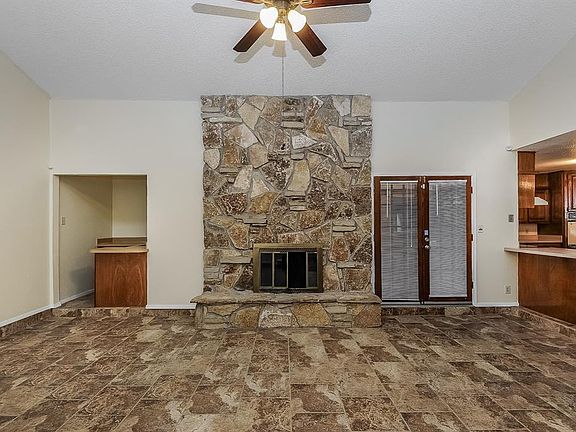 This Fort Worth single story home offers a two-car garage, a screened back patio, a fireplace, a breakfast bar, a walk-in master closet and a master bathroom with a sitting vanity and a separate step-in shower and tub.