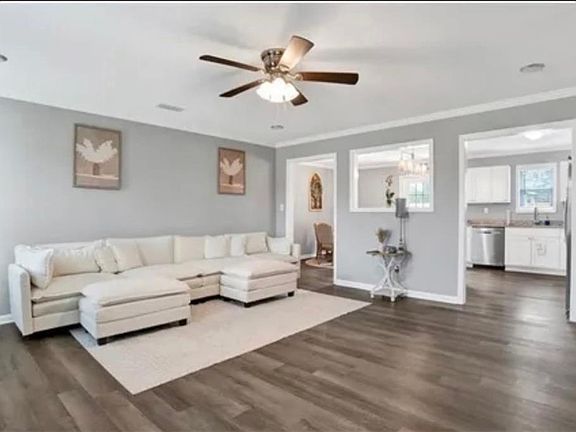 Stunning New Construction Home in Sought-After Grand Bay! Welcome to your dream home! This beautifully crafted new build offers the perfect blend of modern design, comfort, and functionality. Featuring 3 spacious bedrooms and 2 luxurious bathrooms, this home is thoughtfully designed to meet all your needs. Step inside to find high-end luxury vinyl flooring throughout the main living areas, paired with sleek recessed lighting that adds a contemporary touch. The open-concept layout creates a seamless flow between the living room, dining area, and gourmet kitchen—perfect for entertaining guests or enjoying cozy nights in. The chef-inspired kitchen includes ample cabinetry, a walk-in pantry, and stylish finishes, making meal prep a joy. You'll also love the convenience of a dedicated laundry room located just off the main hallway. The master suite is a true retreat, featuring his and hers walk-in closets, dual vanities, and a spa-like bathroom with a his-and-hers sink setup—a perfect mix of luxury and practicality. The secondary bedrooms are generously sized with large closets and share a well-appointed full bathroom. Enjoy your morning coffee or relax in the evenings on the charming front porch, perfect for rocking chairs or seasonal décor. This home is located in the heart of Grand Bay, within an excellent school district, making it ideal for families.
