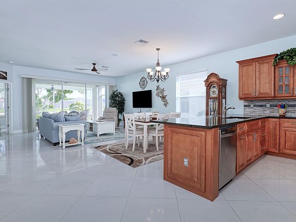 NEW TILE ROOF SEPT 2022! SPECTACULAR, WIDE LAKE VIEW! NOT LOCATED IN A FLOOD ZONE! Move-In Ready, 3BR/2BA with a light, bright & open floor plan. UPDATED, SPACIOUS CUSTOM KITCHEN, with wood cabinets, pretty granite and a large, attached island. Lots of counter and storage space plus stainless kitchen appliances and a tile back splash. Enjoy the crisp, clean feel with the light 24x24" TILE FLOORING THROUGHOUT. Both bathrooms have UPDATED, TILED, WALK-IN SHOWERS. Split bedrooms for privacy and the master has sliders onto the lanai. The EXTENDED, COVERED LANAI, has great space for enjoying the tranquil lake and wildlife that come to swim & eat. Screen enclosed front entry, laundry room with cabinets & sink, plus a 2 car garage. Storm shutters for all openings & impact rated garage door. Survey available and room for a pool if desired! Silverlakes is a gated community in Gateway with a pool & fitness center. LOW HOA FEES. The Club at Gateway offers optional golf, tennis, sports & social memberships. Conveniently located to I-75, SR-82, the airport, lots of shopping & dining, the Red Sox stadium, the downtown River District and much more. Only 30 mins to the beach!
