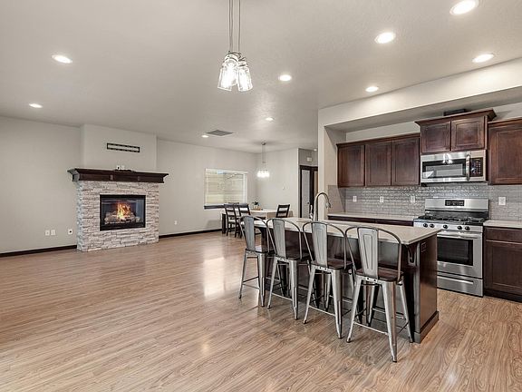 This beautifully cared-for home showcases a spacious open-concept layout, perfect for both everyday living and entertaining. The warmth of real wood trim and baseboards paired seamlessly with high-quality wood cabinetry and soft-close doors in the kitchen, adds timeless charm and everyday functionality. The main-floor primary suite offers both comfort and convenience, while two oversized upstairs bedrooms each feature large walk-in closets—ideal for storage and personal space. Expansive windows allow natural light to pour in, creating a bright and welcoming atmosphere in every room. Step outside to enjoy the lushly landscaped front and backyard—perfect for relaxing evenings or hosting outdoor gatherings. The generous 3-car garage provides ample space for vehicles, tools, and recreational gear. With its thoughtful design, quality craftsmanship, and standout curb appeal, this home truly has it all.
