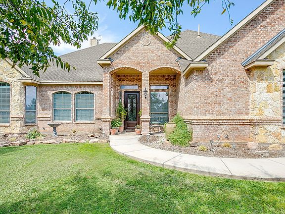 Escape to this stunning custom home on a sprawling one-acre lot, where luxury and country living blend seamlessly. This beautiful one-story brick home, with its elegant stone accents and majestic mature trees, boasts stunning curb appeal. Step inside and be greeted by the warm glow of rich, hand-scraped hardwood floors that flow into the formal dining room and cozy living area featuring a striking fireplace. The heart of the home is a chef’s kitchen designed for both culinary artistry and daily life, featuring a stainless steel double oven, gas cooktop with pot filler, ample cabinets, tumbled stone backsplash, and granite countertops anchored by a large central island. A spacious built-in bench seat in the breakfast nook is the perfect spot for casual meals, while floor-to-ceiling windows flood the space with natural light and offer serene views of the backyard. This home is perfect for both entertaining and comfortable daily living, with vaulted ceilings, elegant crown molding, built-in cabinetry, and graceful arches. An ideally located mud room area provides access to the backyard patio, a full bath and guest room, an oversized garage, and a utility with sink & extra storage. The Perfect private space for in-laws, guests, older children, or a separate telecommuting office. Outside, the large covered patio is an ideal spot to relax and take in the natural beauty this neighborhood offers. The expansive yard offers endless possibilities, with ample room for a pool, playsets, and gardens. A three-car side-entry garage and generous parking provide space for all your vehicles, with room to add a Shop with RV, boat, and ATV parking. Located approximately 35 minutes from Downtown Fort Worth, 25 minutes from Lockheed Martin and the Naval Air Station Joint Reserve Base, and just 10 minutes from Eagle Mountain Lake Twin Points and Fort Worth Nature Center, this home offers a quiet escape with convenient access to city amenities and outdoor recreation.