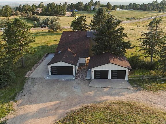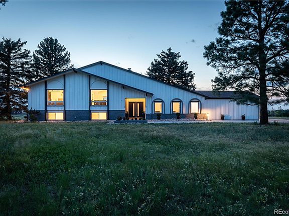 Stunning Mid-Century Remodel on just under 5 acres. This serene modern home has breathtaking views of the mountains & the city skyline. Elegant & completely remodeled, You will be amazed from the moment you open the front doors to the Large Grand Foyer. You are greeted by cathedral tongue & groove ceilings, floor to ceiling picture windows with views of the mountains & city skyline, & beautiful hardwood floors thru-out the home. Off of the Grand Foyer is the formal living room & a very large bedroom that could be an office. Go up the stairs with the new mid-century railings to the family room. The upper level is a massive open & flowing floor plan with a brand new gourmet kitchen that is a chef's dream. There is a has a huge island with beautiful quartz, gourmet stove, brand new cabinets, stainless steel appliances & vaulted ceilings with wood beams & natural light. The family room has wall to wall brick around the gas fireplace. Huge windows encase the amazing views. The Owner's suite is on the upper level with a gorgeous en-suite bath that has a custom tile shower, free standing tub & vanity with quartz counter tops. A 3rd bedroom & 2nd full bath complete the upper level. On the lower, walk-out level, is a large family room with a wet bar & another gas fireplace with wall to wall brick. Brand new carpet. the 4th & 5th bedroom & updated 3/4 bath & laundry room complete the lower level. Outside there is a new patio for added outdoor living space. Enjoy the serenity of country life, while being minutes from downtown Parker, about 15 minutes to the Denver Tech Center and just over 10 minutes to Southlands Mall. The home boasts a 2 car attached garage. Upon entry to the home from the garage, there is a "mud" room with custom cabinets to keep you organized. There is also a 2 car detached garage for your extra "toys". There is even a stable for your horses if you choose to have some. Come check out this peaceful, modern retreat!