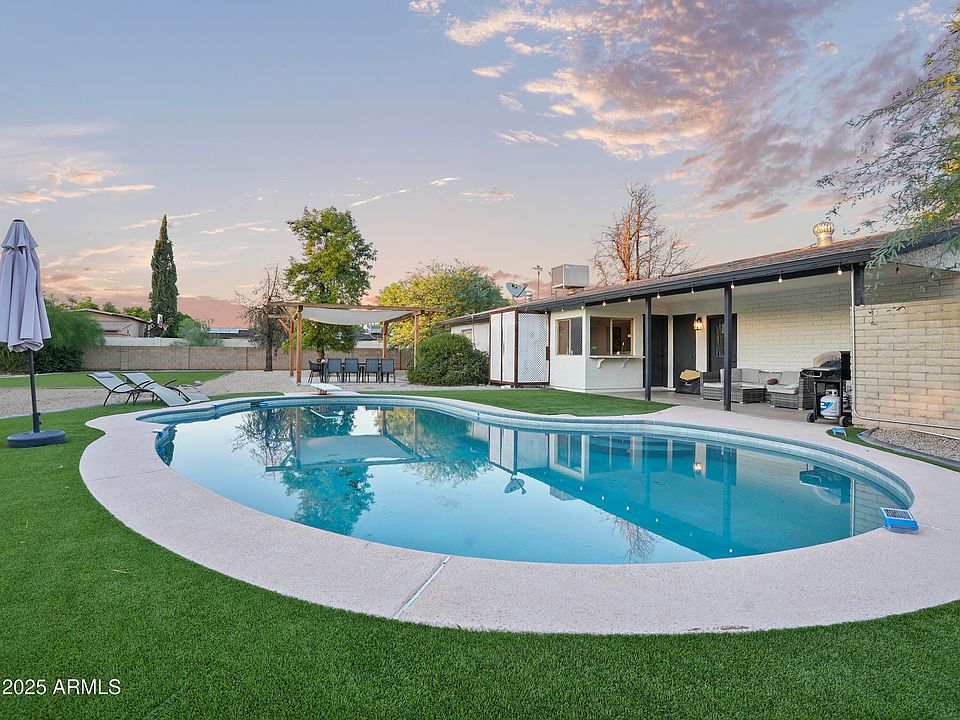 Inside, discover a beautifully remodeled home designed for both grand entertaining and serene everyday living. The expansive layout is bathed in natural light and crafted with thoughtful finishes throughout. Step outdoors to your own paradise retreat—a resort-style backyard featuring a sparkling pool, sports court, lush entertaining space, and endless room to create your Sonoran dream lifestyle. Sunset skies paint the desert horizon each evening, offering unmatched tranquility. Whether you envision building a bespoke luxury estate or enjoying the home as it stands, the possibilities are endless. Fully set up for use as a short-term rental (with furniture available under separate agreement), this is truly a rare chance to own one of 85254's finest addresses. Prime Location - Just a few short minutes from Kierland Commons and Scottsdale Quarter, with dining, shopping, and entertainment at your fingertips. Your private desert paradise awaits.