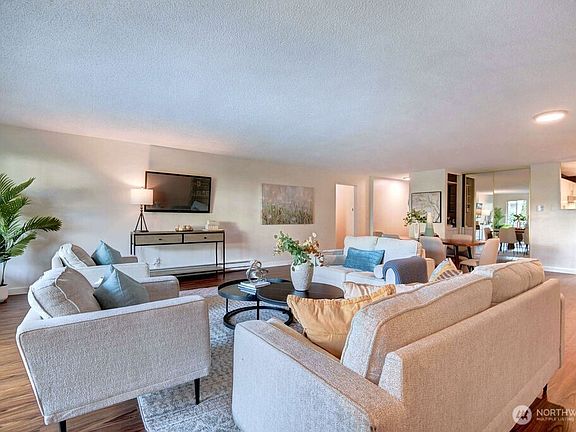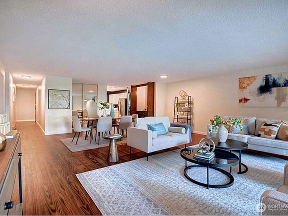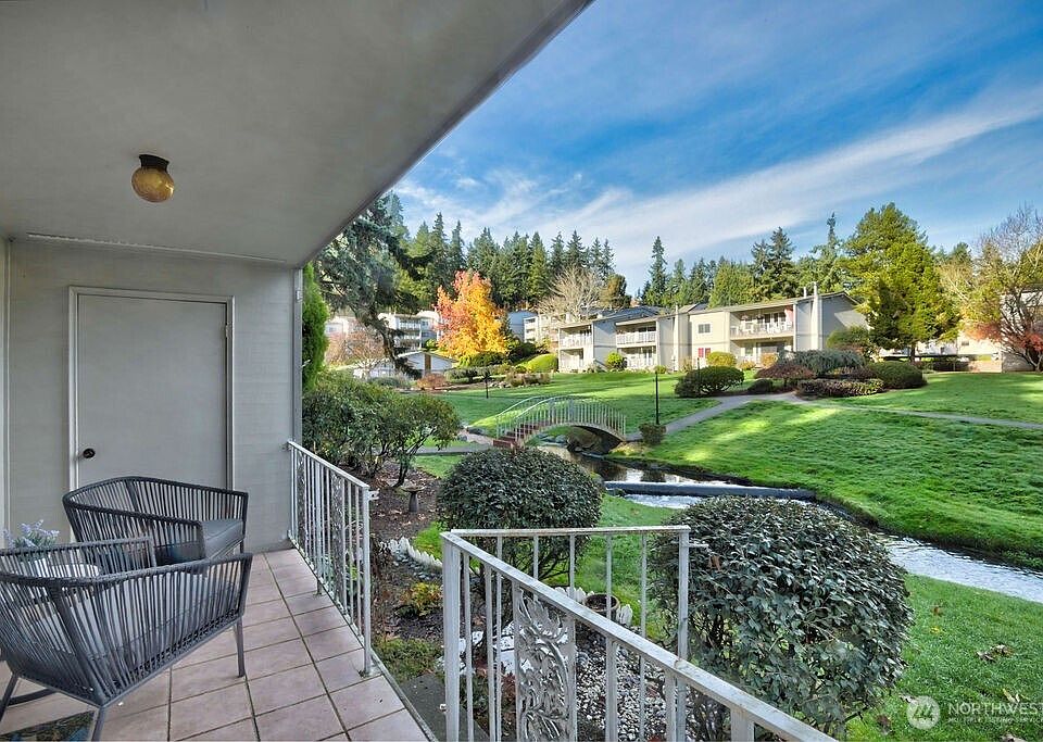Creekside waterfront living looking out to bubbling brook and a well manicured lawn. Spacious 1 bed condo with over 1100sf and an open concept floorplan. Entertain with a well-lit kitchen with lots of storage, a walk-in pantry and a wet bar. An inviting oasis! Sliding glass doors opening to covered lanai overlooking impeccably well maintained grounds. Clubhouse, outdoor pool and hottub and a well-run HOA. Full size washer/dryer and only 1 year old H20 tank. Easy commute with public transit on 15th Ave NE and Light Rail Transit station nearby. Upcoming assessment will benefit this unit with improvements to decks and crawlspaces underneath the ground level units.