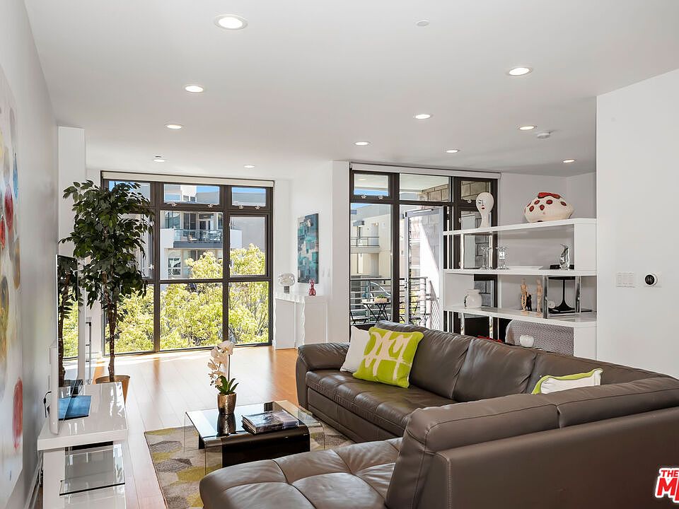 This spacious 1,400 sq. ft. residence at Concerto Lofts features an open floor plan with bamboo flooring throughout and a flexible office space. Expansive floor-to-ceiling windows showcase south-facing treetop views and fill the home with natural light all day. The primary suite flows into a private bathroom with dual vanities, soaking tub, and separate shower. Smart recessed lighting and a Nest thermostat provide modern comfort. Two individual parking spaces with extra storage and EV chargers are included. Concerto Lofts residents enjoy an array of premium amenities: swimming pool and spa, fitness center, fire pits, picnic and BBQ areas, private movie theaters, community events, hiking trails, and a beach shuttle. The complex sits just steps from Concert Park, dining, and shops, and is a very short distance to Google, YouTube, and top Silicon Beach entertainment and lifestyle destinations.