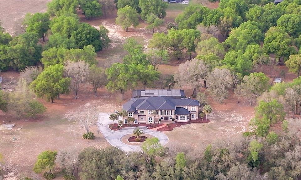 Beautiful custom built estate home in Clermont's Sugarloaf Mountain area! Situated on 5 acres with long private circular driveway, this gorgeous pool home features 7 bedrooms and 5 1/2 baths with 4 car oversized garage and No HOA. The minute you arrive at the end of the driveway, you have a very private home with gorgeous palm trees and many oak trees through out the property. The area is unique with the beautiful rolling hills. Upon entering the large double front doors, you'll find a very nice open floor plan with vaulted ceilings. There is beautiful engineered hardwood floors in the Great Room, Dining area, over sized Master Suite and two guest bedrooms. Nice plantation shutters are through out the home. The split floor plan is great for privacy and Master Suite is to the right of the home with huge vaulted ceilings and an upstairs loft which is great for an office or work out room. There are doors that lead to the lanai and pool area too. The Master bathroom has recently been updated with a large walk in shower, free standing tub, dual sinks, spacious walk in closet with barn door and plank ceiling. The Great Room has lots of natural light with a beautiful chandelier at the front door entrance. Sliders lead to the spacious patio which offers an outdoor shower, bathroom and outdoor kitchen. The screened in pool has a diving board, spa and safety net if needed. On the opposite side of the home you have a nice sized guest room and full size bathroom, large laundry room with cabinets, sink, laundry chute and built in ironing board. The Kitchen is open to the Great Room with stainless steel appliances, island with sink, great views of the backyard/pool area, bar with seating and dining room with views of the pool. Beautiful wrought iron staircase leads to the upstairs which features 4 bedrooms each with a jack and jill bathroom, built in shelving, another 7th bedroom with full size bath outside the hall. The bonus room is very spacious and has two walk in closets and stairs that lead outside to the balcony/pool area. Awesome home for entertaining! This home is rare to find with this much space and acreage as well the nice privacy that it offers. Recent updates include new roof, new upstairs 5 ton AC unit, new Gas Water heater, new Master bedroom electric water heater, completely updated Master bathroom and two new garage doors with openers. Country feel yet close to town! Minutes to Turnpike, Highway 27, schools, shopping, Hospitals and restaurants.