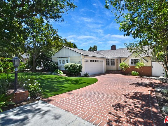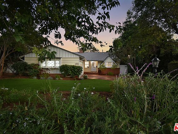 Beautiful 4 bed, 3 bath Hidden Woods Mid-Century Ranch inspired by renowned designer/builders William Mellenthin and Jean Vandruff. Step through the welcoming front entry into an expansive living and dining great room, adorned with impressive high wood-beamed ceilings, elegant oak flooring, a custom-built fireplace w shelving, a striking custom bookcase and TV center, and sliding French doors that lead to the pool and landscaped grounds. The updated kitchen flows seamlessly into the dining area, featuring a breakfast bar with chic pendant lighting, abundant shaker-style cabinets with sleek countertops, stainless steel appliances including a premium Wolf range, Sub-Zero fridge, and a convenient laundry nook, all creating the perfect workspace. Near the entrance, you'll find a roomy 4th bedroom (or den) with a stylish bath, while the main hallway connects to three cozy bedrooms, two sharing a beautifully renovated hall bath with refined quartz counters and frameless glass shower over tub. The secluded primary suite boasts a walk-in closet and a spa-like bathroom with French doors that open to the serene outdoors. Outside, a brick-covered patio offers an idyllic setting for social gatherings, overlooking a sparkling pool and private, low-maintenance yard with artificial turfperfect for pets or leisure activities. This exceptional property, ideally located in a prime Sherman Oaks area, is just steps away from Whole Foods, top-tier restaurants, Sportsman's Landing, Westfield Mall, and the Westside. Visit us at 13046 Addison Street, looking forward to seeing you there!