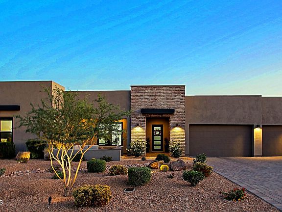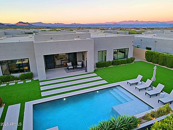 This is your 3,100 SF Shea-built dream retreat! 3 en suite bedrooms, 3.5BA, and 3CG with an abundance of cabinets. Enjoy unobstructed panoramic views of Four Peaks & Tom's Thumb from nearly every room in the house, plus cooler temps 8-10 degrees below the Valley. Smart Home technology w/built-in audio/video t/o, along with designer touches. Luxurious primary suite w/custom bath & additional closet. Chef's kitchen boasts top-tier Monogram appliances, 48'' six-burner gas range, soaring cabinets, 3 ovens + convection/microwave, & wine fridge. Seamless indoor-outdoor living w/16' center slider, cantilever pergola, entertainment and service center, gas fireplace, outdoor speakers, & custom pool w/Baja landing. Elegance, comfort, & resort-style living await! See SUPPLEMENT section for more. Welcome to a home where elegance, technology, and nature harmoniously unite. Nestled in a prime cul-de-sac location, this 3,100 sf Shea-built masterpiece offers unobstructed panoramic views of Four Peaks and Tom's Thumb, enjoyed from nearly every roomincluding the backyard, front courtyard, great room, dining area, and luxurious primary suite.