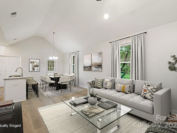 Welcome to this beautiful new build offering an open concept plan with tall cathedral ceilings, luxury vinyl plank flooring thruout & thoughtfully designed upgrades hard to find at this price! Enter the cute front porch inviting you into the living room featuring high ceilings which opens seamlessly to the kitchen and dining area allowing ease in entertaining and functional everyday living! The neutral design palette extends throughout the home including the kitchen with large granite island w/ seating, stainless appls, granite counters, white soft close cabinets & separate pantry. Make your way to the primary with large closet & full bath w/ tile surround shower & granite ctrs. The secondary bedrooms have nice closets & share the hall bath w/ beautiful tile shower & granite vanity. Additional features include a storage closet, all LVP floors thruout, no HOA, located Only 2 miles to I-77, 5 miles to I-40, near tons of dining options, cute shops in downtown Statesville & close to parks & rec! You may qualify for zero/low down payment assistance or special financing programs!
