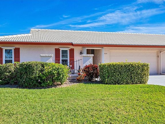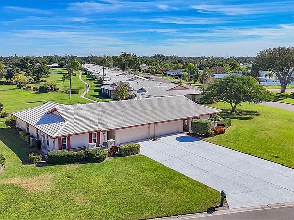 Experience the best of the Florida lifestyle in this pristine, turnkey-furnished, maintenance-free, 55+ Village Green Condo Sec 12 paired villa located in highly desirable West Bradenton—just 5.7 miles from the beautiful shores of Holmes Beach on Anna Maria Island. This spacious Model D villa offers 2 bedrooms, 2 bathrooms, and an impressive 2,154 sq. ft. of air-conditioned living space, making it the largest floor plan available in the community. The oversized 20x20 two-car garage includes a remote-controlled storm door, built-in cabinetry, attic storage, and a utility sink. The villa faces a peaceful landscaped greenbelt garden with a circular side walk that leads directly to the Sec. 12 pool and lakeside gazebo. Fully Updated & Move-In Ready this home is loaded with improvements for comfort, efficiency, and peace of mind. A Secure steel entry gate plus hurricane shutter. A welcoming foyer with two generous storage closets. Luxury vinyl plank flooring throughout living spaces, ceramic tile in bedrooms and baths. Extensive crown molding and no popcorn ceilings throughout. Double-pane insulated windows, all equipped with hurricane shutters. All lights, fans, fixtures, baseboards, interior doors updated. The beautifully redesigned galley kitchen, fully remodeled in December 2024, features: Custom wood cabinetry with dovetail construction and soft-close hardware. Quartz countertops, Stainless steel GE appliance package, under-cabinet lighting, recessed lighting with dimmers, and additional custom storage in the dinette area. Both bathrooms have also been stylishly updated. The primary suite includes a roomy walk-in shower, while the guest bath features a tub/shower combination. Features include a new A/C (installed 5/2024), water heater (8/2020), large bedrooms with ample closet space, an indoor laundry room with full-size Speed Queen washer and dryer, overhead cabinets, and extra counter space suitable for crafts, storage, or a second home office. Worry-Free Living for $535/month condo fee (paid quarterly) which includes: Basic cable TV & internet, exterior painting, annual roof cleaning, common area taxes, community pool access, escrow reserves, grounds & landscape maintenance (excluding the patio area behind the front pillars), exterior pest control and pool upkeep. This property is situated in a prime West Bradenton location, offering convenient access to shopping centers, grocery stores, medical facilities, numerous dining establishments, GT Bray Park, Robinson Preserve, Downtown Bradenton Riverwalk, and renowned Gulf beaches. Nearby airports include SRQ, TPA, and PIE for convenient travel. This impeccably maintained villa is truly move-in ready and priced to sell. Schedule your private showing with the listing agent today and discover why Village Green remains one of West Bradenton’s most beloved 55+ communities.