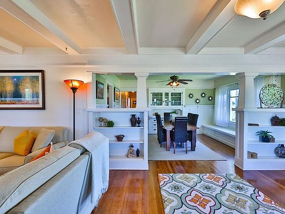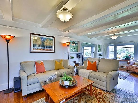 This cream puff Craftsman bungalow will capture your heart the minute you pull up! Features include 4br/2ba, hardwood floors, fireplace, architectural details like built-ins & box beam ceilings, classic front porch, primary suite w/spa-like bath & walk in closet, updated kitchen & tons of storage. Sparkling pool, hot tub, gazebo, 2 leased solar systems, detached workshop, RV hookups, fruit trees & multiple entertaining areas. Level corner lot that is just over 1.25 acres. This is the good life... and you deserve it!
