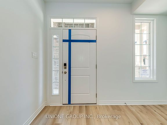 Welcome to this luxury executive corner double-car garage townhome by Mattamy Homes in the prestigious Upper Joshua Creek community. This stunning 4-bedroom, 3.5-bath residence offers 2,075 sq. ft. of upgraded living space featuring 9' ceilings on both the main and second levels, hardwood flooring, and smooth ceilings throughout. The open-concept gourmet kitchen boasts quartz countertops, a designer backsplash, stainless steel appliances, and a large island with breakfast bar. The dining area flows seamlessly to a walk-out deck-perfect for entertaining or relaxing outdoors-while the bright living area with an electric fireplace creates an inviting atmosphere. Both the first-floor ensuite and third-floor primary ensuite feature dual sinks and walk-in glass showers, and a convenient upper-level laundry room adds everyday ease. Steps to the brand-new public school and minutes to Highways 403/407/QEW, scenic trails, golf courses, and nearby amenities including Starbucks, Longo's, and Shoppers Drug Mart.
