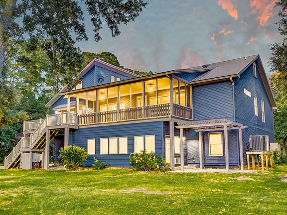 Gorgeous Lowcountry Retreat on almost 6 acres with 2 docks - one on a Private Pond and the other on a Tidal Creek. Coveted high ground acreage just minutes from Mt Pleasant, this rare gem is nestled among the breathtaking coastal scenery of Awendaw! A serene and private escape with beautiful flora and fauna visible in every direction from any window, including a tranquil 1-acre pond shared with an amazing neighbor who keeps it stocked with bass and brim. The property is large enough for horses or just enjoy the three friendly, sociable ducks that have made the pond their home. With a private dock on the tidal creek (with power and water) that's about 8 feet deep at high tide,* you can indulge in kayaking adventures or potentially add a drive-on floater and park your boat or jet skis.This spacious 5-bedroom, 4-bathroom residence has been thoughtfully updated and renovated, ensuring a modern and luxurious living experience. As you step inside, you'll be welcomed by the warmth of a large living room boasting vaulted ceilings, a cozy fireplace, and large windows bathing the space in abundant natural light. The home features new floors throughout, adding a touch of elegance and comfort. The kitchen is a culinary enthusiast's dream, equipped with beautiful countertops, a breakfast bar on the island, skylights, and ample storage and counter space. The eat-in dining area and the screened-in porch provide the perfect settings to enjoy meals while immersing yourself in the surrounding beauty. The primary suite is a sanctuary of relaxation, with access to a deck overlooking the verdant landscape. The ensuite bathroom offers a dual vanity, a freestanding tub, and a spa-like custom tiled shower, creating a luxurious atmosphere for your daily routines. Additionally, there is a large laundry/utility room with built-in storage, a flexible office space, and plenty of room for storage throughout the house including a large, floored attic. The home also features a heated and cooled extra large 2-car garage with insulated doors, providing convenient parking and storage solutions. Updates to the property include new windows in 2022, a 2018 AC system, a 2018 water heater, fresh exterior and interior paint in 2018, and a 2017 roof. The ground level has been fully renovated to create an in-law space, offering 2 bedrooms, 2 bathrooms (one with a steam shower), a kitchen, a sunroom, and a living room. The new floors and 9 ft-high shiplap ceilings add a modern touch to the ground level space. With an upgraded panel box, wiring, and ductless heating and cooling system, your guests will feel comfortable and welcomed. This space is designed to be part of the house or separate as a rental, so there is potential for that as well. Stepping outside, you'll find enchanting features such as a grape arbor, blueberry bushes, beautiful azaleas, crepe myrtles, and majestic live oaks that add to the overall charm of the property. This property is zoned for Charleston County Schools and is located 6.2 miles from Costco and other shops, 14.4 miles from Isle of Palms, 19 miles from the heart of downtown Charleston, and 26.3 miles from Charleston International Airport. This stunning Lowcountry retreat offers an unparalleled combination of natural beauty and modern amenities. Don't miss the opportunity to make this peaceful oasis your own. Schedule a showing today to experience the magic of this captivating property! *Potential rental options and availability including short-term and long-term options must be confirmed by all governing bodies. -Water depth and bottom subject to change and vary - e.g., tides, erosion, sediment, water flow, land change, location). Buyer should investigate dock, location, dimensions and depth prior to contract.