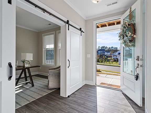 Welcome to Gordonia Way in the coveted Linden Community! This stunning 5-bedroom, 3.5-bath home is ready for you to enjoy with beautiful features throughout. Step inside to find gorgeous flooring and a barn door that opens to a spacious office. The main level offers a bedroom with an ensuite, a convenient powder bath, open-concept living and dining spaces, and a beautiful screened-in porch complete with a stone fireplace—perfect for relaxing or entertaining. Upstairs, the large owner's suite awaits, featuring a soaking tub, walk-in shower, spacious walk-in closet, and double vanities. The additional bedrooms and baths are well-appointed and generously sized, with a large laundry room on the second level including a utility sink for added convenience. The 5th bedroom also serves as a Media room featuring surround sound for the ultimate entertainment! Enjoy the community amenities, including a pool, clubhouse, and playground. Walking distance to the new Sweetwater Town Center!