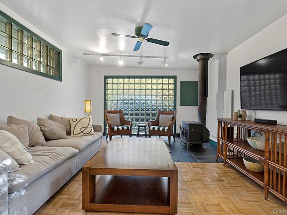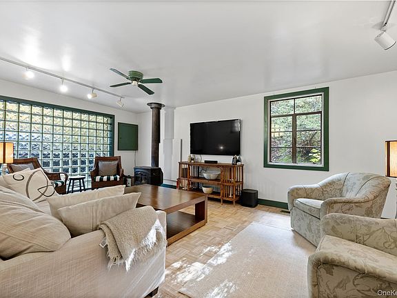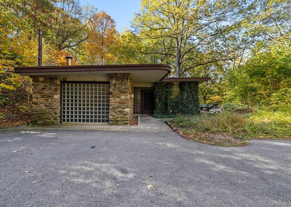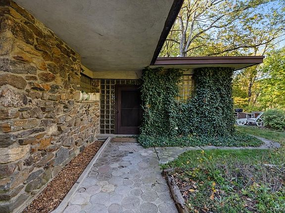 Set on more than 4 serene wooded acres, this architectural gem offers a rare combination of privacy and accessibility, just an hour from NYC. Designed in the 1940s by renowned architects Jean and Don Graf as a personal getaway, the fieldstone mid-century modern home captures a timeless organic presence that grounds the home to its natural wooded setting. Enjoy peaceful, sun-dappled interiors, thoughtful design details include block glass, original black framed windows and doors. One level living, with a cozy inviting scale offering two bedrooms, office/guest room with built-in cabinetry, living room features a wood burning stove, kitchen offers a cozy, sunlit breakfast nook and updated appliances. Side door gives access to a lovely stone terrace overlooking the treetops. There are two out buildings; pump house /storage and a shed. Located with effortless access to the Teatown Lake Reservation, with its scenic hiking trails and over 230 species of wildflowers. This property is a true retreat for those seeking tranquility without sacrificing convenience.
