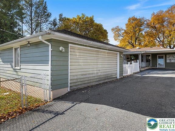 Let this be the end to your home search by a tour through this ranch home. You'll find 2 bedrooms, 2 bathrooms, 2 Car Detached Garage, Large Finished Room in the Basement on .33 acre. Plenty of outdoor space to play in the yard and invite friends and family to picnics. Front porch entrance welcomes you into the large dining area which flows into the the Living Room features hardwood floors. Large windows and sliding rear door door out to the covered carport area offers natural light. Bonus Rec Room has a separate exterior door to provide it own private entrance to support your home office or additional family room. Kitchen is cozy and feature an eat in breakfast area, large windows, and back door to covered patio and fenced in backyard. Updated full bathroom with white tiles with black trim. 2 Bedrooms with nice closets and hardwood floors. The basement has a large finished room to make a comfortable spot to watch movies or turn into a home gym. There is a bathroom with a shower stall, laundry, storage and utility room also in the basement. 2 Detached Garage and Driveway parking are a highlight of the this property. New Roof in August 2024 and flat roof in 2021. 3 Built in AC wall unit are in the home. This is an Allentown gem with easy access to Route 78, 309, and 22.