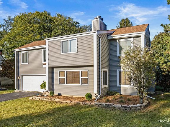 AMAZINGLY UPDATED MODERN HOME ON A LARGE CUL DE SAC LOT!! 3 BR, 2 FULL BATH home has so much to offer! Natural light flows throughout the home with generous sized windows, vaulted ceilings, and skylights! Two-story family room featuring one of the two wood burning fireplaces! Eat-in kitchen with beautiful wood cabinetry and granite countertops! Bedrooms located on the second level! Partially unfinished basement! Home is situated in quiet cul-de-sac! Great location in a quiet neighborhood, close to ample shopping, restaurants, and walking distance to schools! Hurry and schedule your showing today! Don't forget to check out the 3D tour!