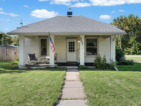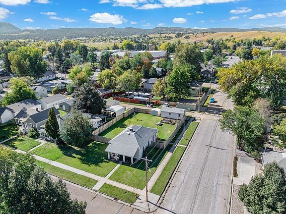 Listed by Cory Williams, The Real Estate Center, 605-490-3045. Great starter home or investment property just 3 blocks from Main St. Historic charm with modern updates in this 2 bed, 1 bath home on a large corner lot. Great natural light floods into every room and highlights the beautiful wood floors that flow throughout the living, dining and bedrooms. Both bedrooms have 9' ceilings and the primary has a walk-in closet and access to the bathroom. The formal dining room leads into the functional kitchen where you will find access to the mud room and laundry. Outside you will find a beautiful back yard with raised garden beds, storage shed, detached 1 car garage, and covered front porch. New 6' privacy fence was added in 2023 along with new garage wiring in 2025. Updated siding and vinyl windows throughout the home.