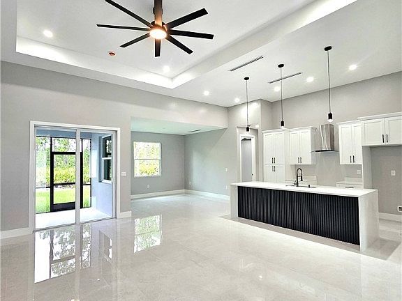 Stylish finishesLarge islandScreened-in lanaiModern open-concept designQuartz countertopsHigh ceilingsHalf-acre lot